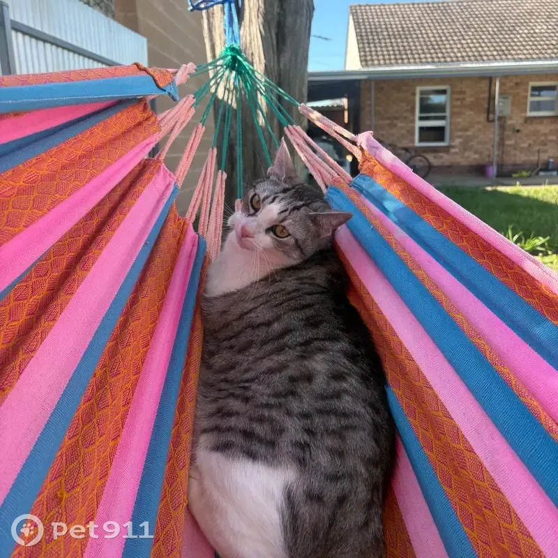 He’s color grey tubby and white and a little yellow in his belly, he had a paw with a nail healing, He also has a chronic eye condition; it always waters, and if it's not cleaned, it turns black, and also is taking medication It's his right eye anyway. Thank you if you can help me please finding him