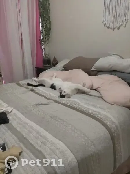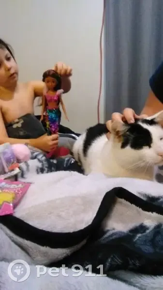 Patch is black and white short hair desexed microchipped very friendly has a love heart on his elbow only has three teeth as he is missing one of his big ones at the front wasn't wearing his collar he's 10 years old