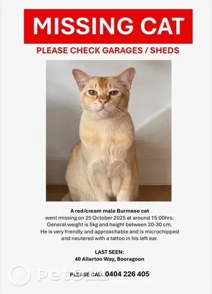 Missing cat , photo: Lost Red/Cream Burmese Cat in Booragoon