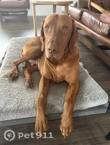 Hank is a red dog, Hungarian Vizsla who is 4 years old. He is extremely friendly but has been scared by some gun noises that were coming from the east. We have been riding around and driving around asking neighbours etc with no luck.
