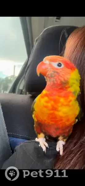 Bright yellow and red with greenish in both sides of wings and his favourite things to do is kisses he’s healthy looking bird and he likes to stay in the heads also he like wombaroo food loves being around with people and likes to bites My cousin told me too late that my bird was missing she said she couldn’t find him on feb7,2026 night time, she hasn’t told me anything only when I noticed that my house is soo quiet I was worried and look everywhere and I couldn’t find him it might be on my backyard or front and we checked the cctv the installer couldn’t even help me fix the issue soo right now am looking everywhere hopefully people or anyone will tell me where he is
