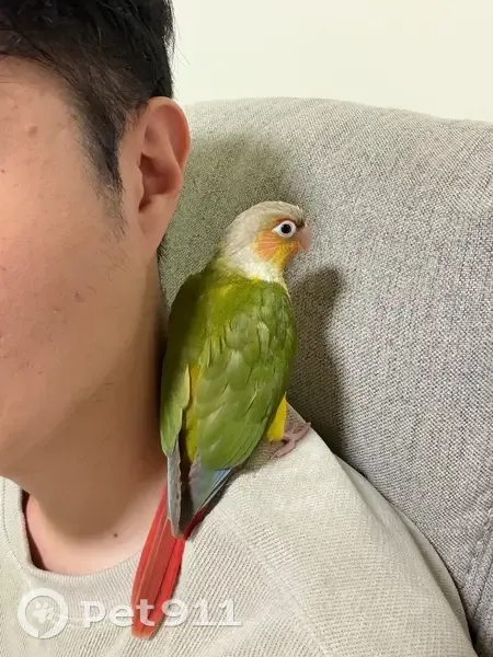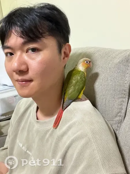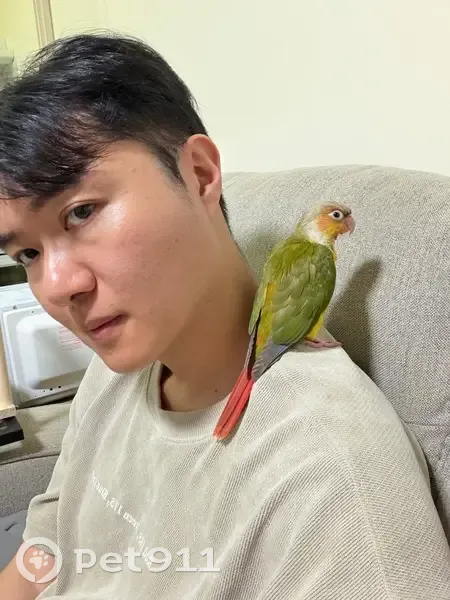 He is 3 months old. We didn’t have wing clipping so he fly away. It has a leg band which has a name Lu shichao and phone number 0421228005. You can also contact me via 0413166697