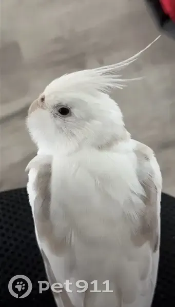 He’s a white cockatiel with brown feathers on his back - quite small so around 90 grams. He is friendly and hand-tamed to step up into hands and sit on shoulders, however he may be a little spooked right now as he’s never been outside the house before. He escaped through an empty door in the backyard and he flew really high into the sky - so high that I lost sight of him and haven’t seen him since. He’s a fussy eater and only eats seeds so I’m hoping that he’s doing okay right now and I really hope he can be brought home soon.