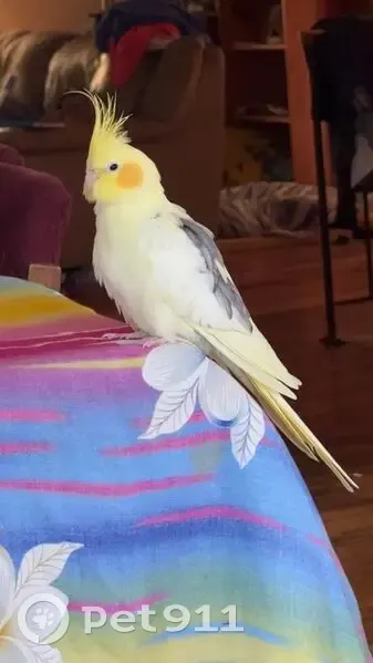 Yellow body with grey markings on the back of his wings. He whistles back if you whistle to him and he's tame. He flew through an open window at around 2pm on Wednesday 8th of April. He's still in the area, he was heard on sunset rd near the bus stop next to moonlight street yesterday evening.