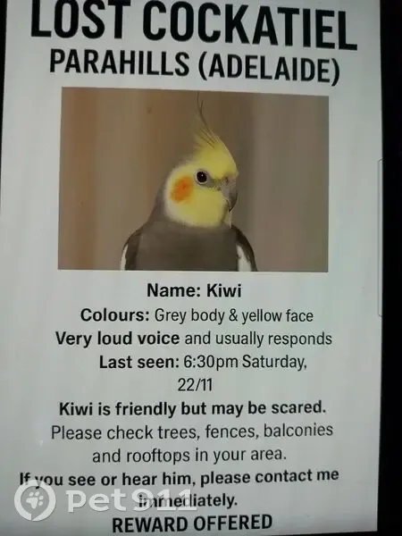Lost pets Salisbury, photo: Missing Bird: Grey Body, Yellow Face