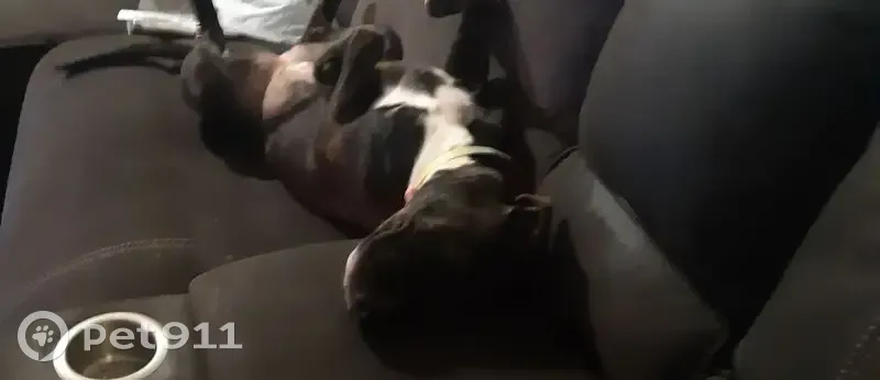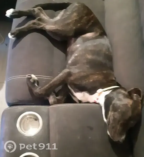 Zoe is a brindle cane corso x 6 month old female puppy . She is a very lanky and quite tall due to her breed . She was wearing a collar that matches the 4th photo . She has a playful nature and is very inquisitive.