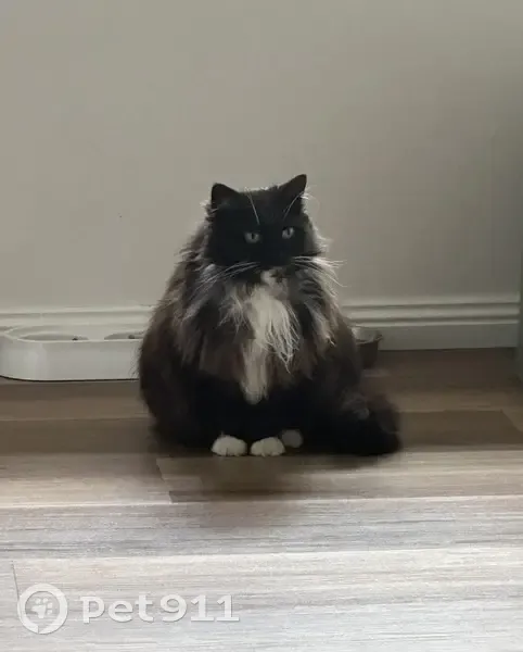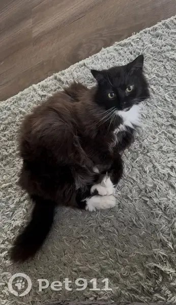 She is a big girl with a fluffy coat. Tuxedo with white paws. She has a white chin but black fur that looks like a mole. Indoor kitty who ran out and hasnt come back. Unfamiliar with area as we have only been here a few months She is 17 years old and may be quite afraid. She may hiss but does not attack