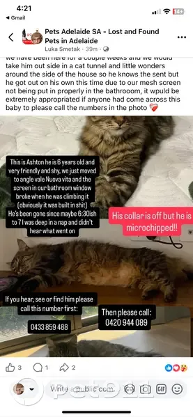 Missing cat Playford, photo: Help Find Meowscles: Lost Cat in Munno Para