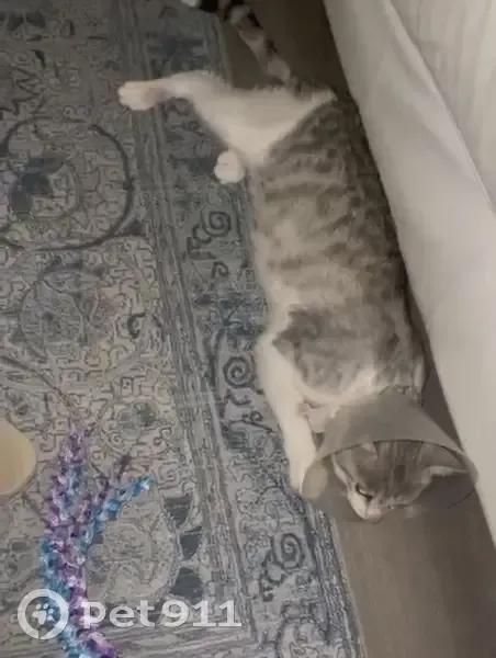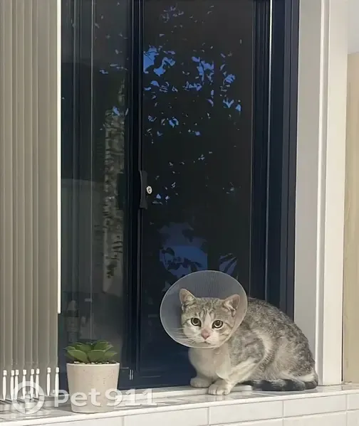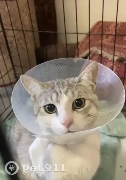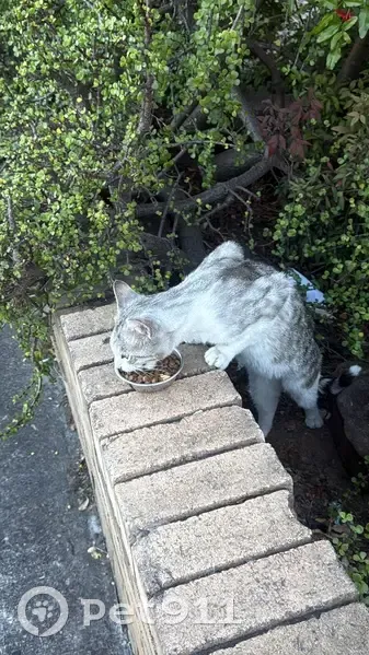 Tommy is a large grey and white male cat who is already desexed. He was originally rescued from the streets and then adopted, but unfortunately the family who adopted him lost him — he escaped through the door. Because of this, he doesn’t really know his own name, Tom. He is very gentle, but he is extremely scared at the moment, and he is not wearing his desexing collar.