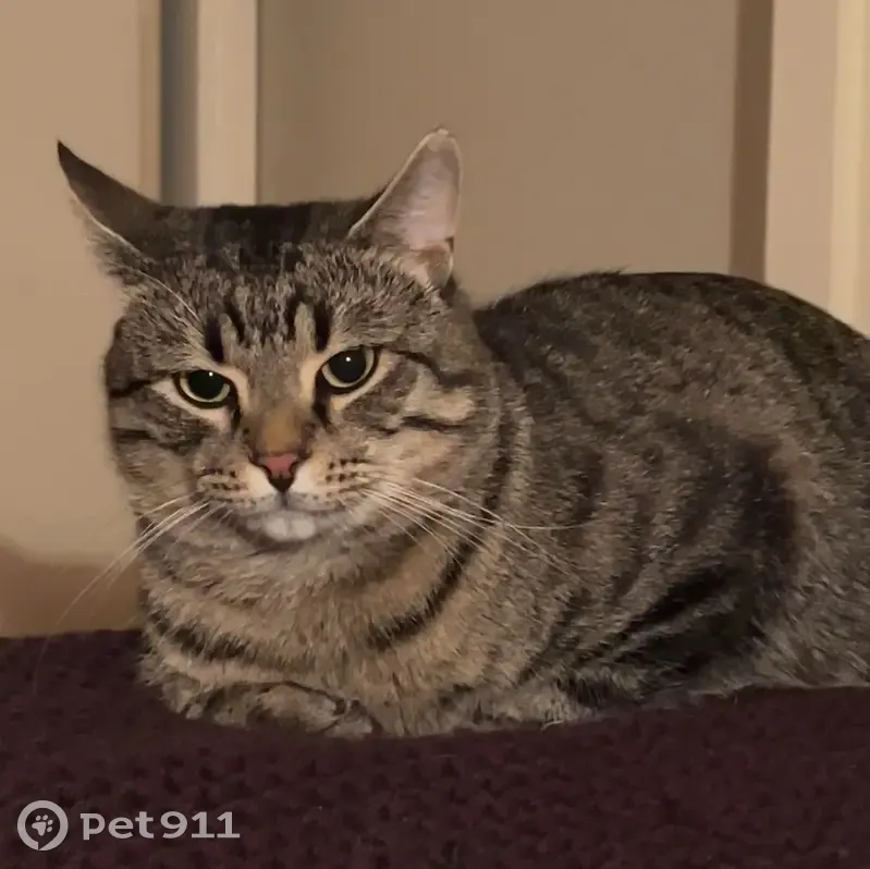 He is a friendly adult male cat but might be scared. Has nothing around his neck. He has a tiny cat in one of his ears.