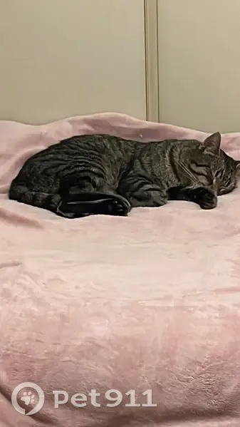 He is an adult male cat. Has brown/gray colour. One of his ears has a tiny cut and he is not microchipped.