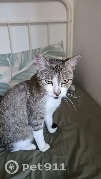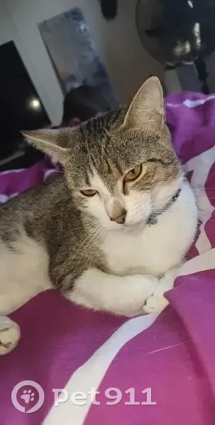 Lulu is a 7 year old small female tabby cat with white front legs, she was wearing a flea collar when she managed to get out and is not microchipped. Lulu is friendly but can be anxious around new people so may hide when approached