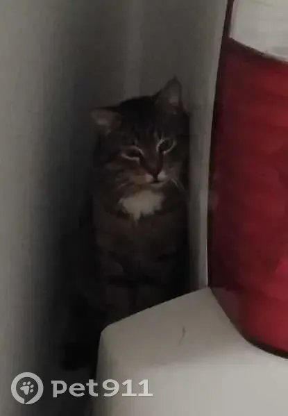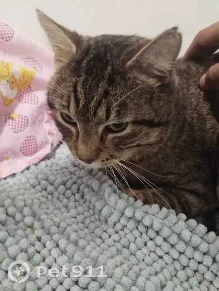 Tabby cat, has round eyes most of the times, a bit fat on the face, always sits around, maybe moves around in the outside, got the pet from rehoming pets in old toowomba road. No collar yet, got it a few days ago.