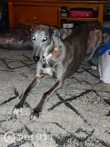 Greyhound brindle brown, very friendly, ran off with his sister Hollie a black greyhound, last spotted in Newnham heading towards Mowbray. Both have red collars and name tags