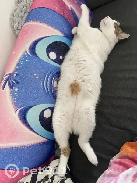 Mainly white with brown and black patch and markings on his back and head. A black dot next to each eye on the outside, brown ears, brown round spot on middle of belly and right back leg. Very fluffy. Blue collar with a blue engraved name tag with phone #. He’s got a calm, gentle and cuddly personality/nature but might be a bit timid being outside as he’s an indoor cat. He snuck out the garage as I reversed my car out and I didn’t notice till I got home 20 mins later. He was spotted on CCTV footage at 12 Kristy St at 819am but not been seen since