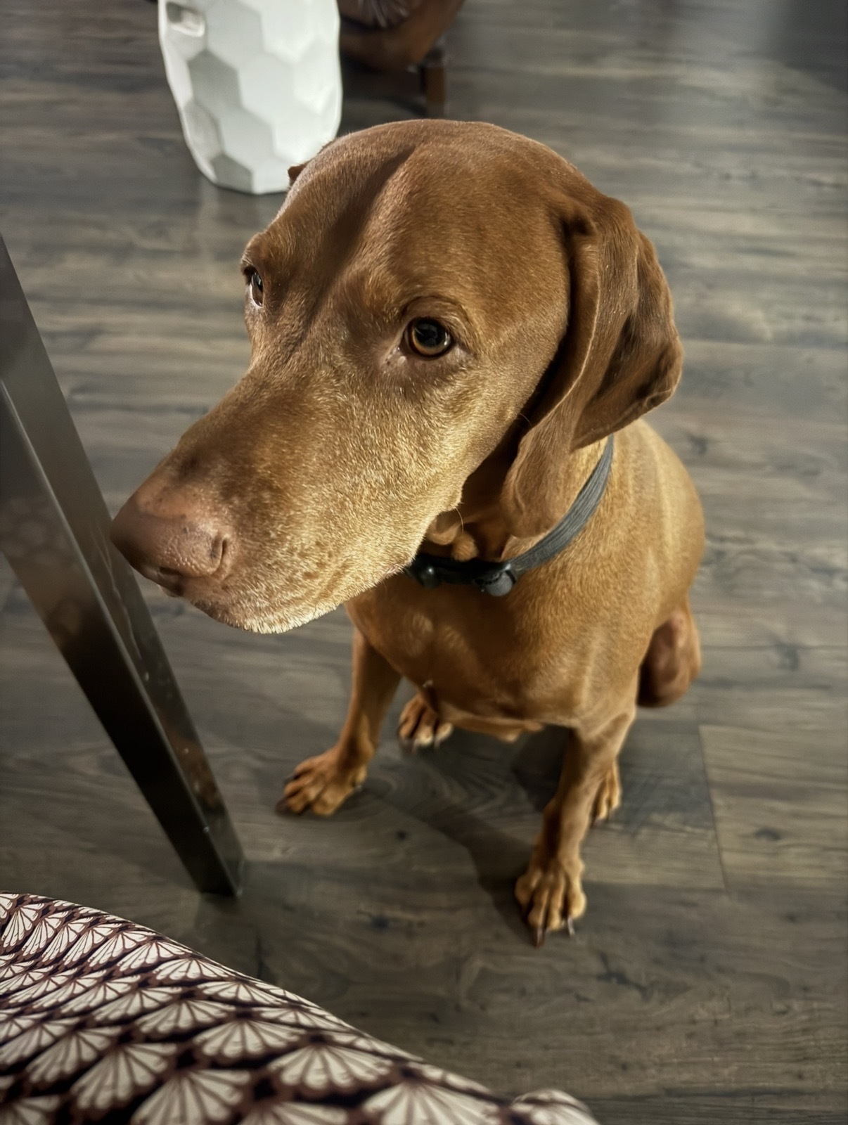 Hank is a red dog, Hungarian Vizsla who is 4...
