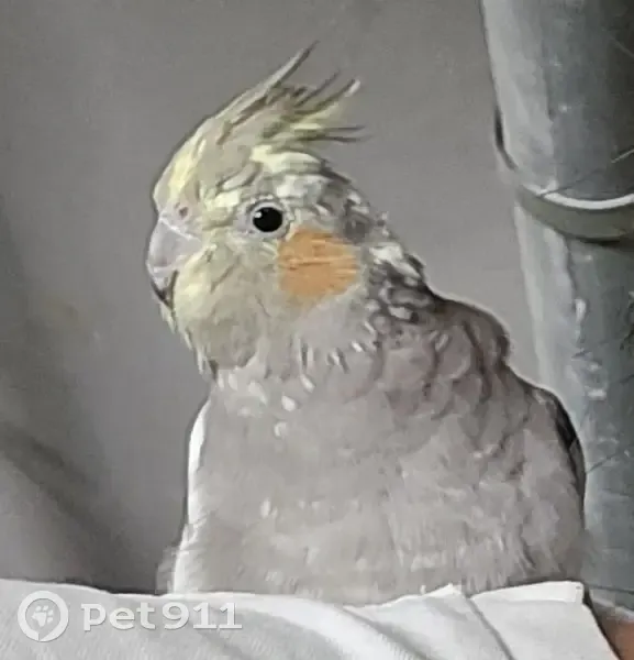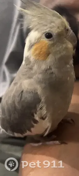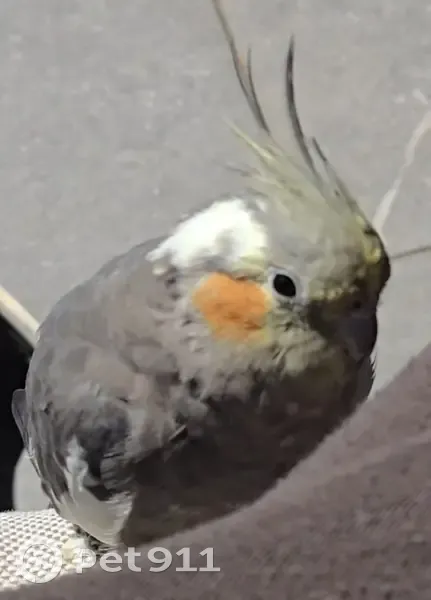 Flew out of window and last heard her chirping around Morton Street & close to macarthur street. Friendly but also cautious but will perch on you if you approach her. She’s gray with orange cheeks. Has a loud scream like call.
