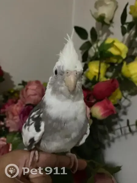 Snowy is a small white faced cockatiel who is gentle and small has a crest. It flew of my hand and it flew from lane street to the lane street park call it by saying snowy