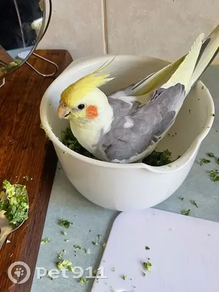 He has a yellow very expressive crest and white and grey belly. He can sing if your happy and you know it and the cookie song. He will be very frightened.