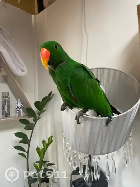 … LOST ECLECTUS PARROT!!!! BORONIA / THE BASIN / FERNTREE GULLY. Beloved male (green) eclectus parrot named “Georgie”. Disappeared from near Forest Rd and Boronia Rd this afternoon (30/8) Says “Georgie Porgie”. When at home, inside, he is extremely friendly and inquisitive. He will readily land on your shoulder or hand especially of tempted with a treat such as lollies or sunflower seeds or nuts. Please call 0412038590 if you see an eclectus around the local area. Even if you think you may have heard “Georgie Porgie” outside but too dark or you can’t actually see him. I’ll investigate. Please I will happily reward any information leading to him.