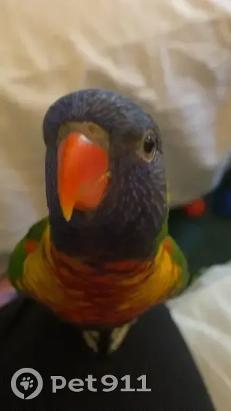 I was bringing him inside and he got a fright and flew off my shoulder. He can say a few words such as, hello, how’s it going, good boy and a couple of Russian words.