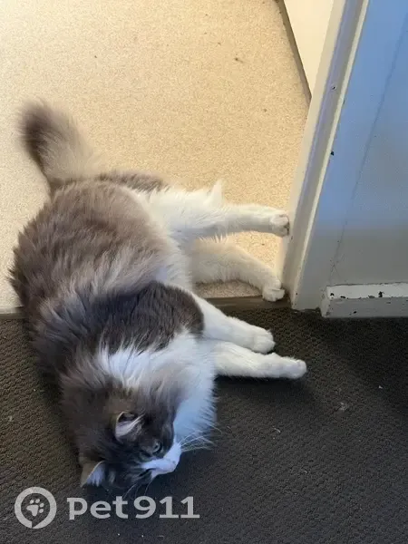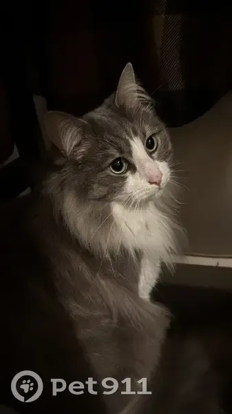 Grey and white male cat medium sized, well fed cat. Green eyes, soft but loud meow. Long haired, about 3 years old. He has a brown marking on his nose . He got out the front door, and hasn’t been seen since, we have tried going around the area so many times but he hasn’t come back home.
