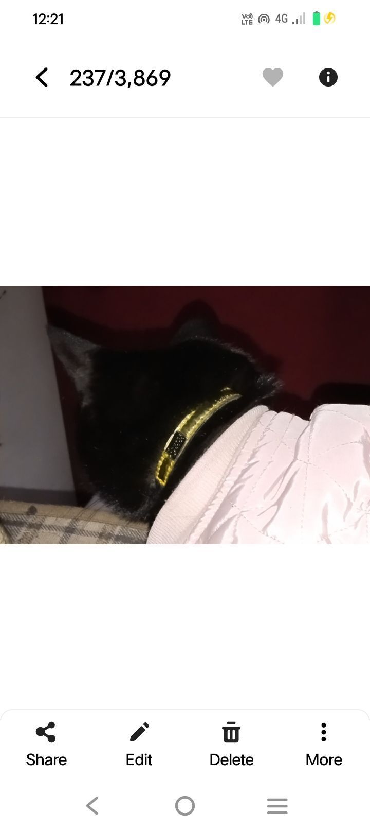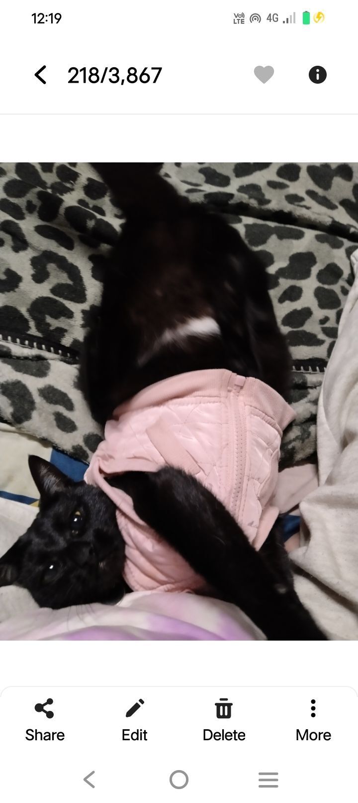 Middy is a domesticated short hair silky black cat she is desexed but not yet microchipped she was wearing a sparkly gold collar with a silver tag and gold bell she is 3 yr old she has a small head and slightly chunky body she got out the front door by accident she has a top fang tooth that occasionally sits outside he mouth on the left side of found or seen please contact me on 0474722600