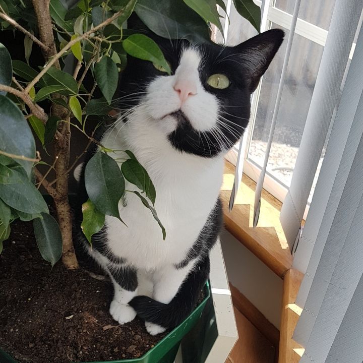 Sophia is a female tuxedo, about 10years, light weight under 5kg, has an old collar worn, desexed. She is street smart, likes to be alone, friendly, sensitive nature and very affectionate. She most likely is around the Rosewater area.
