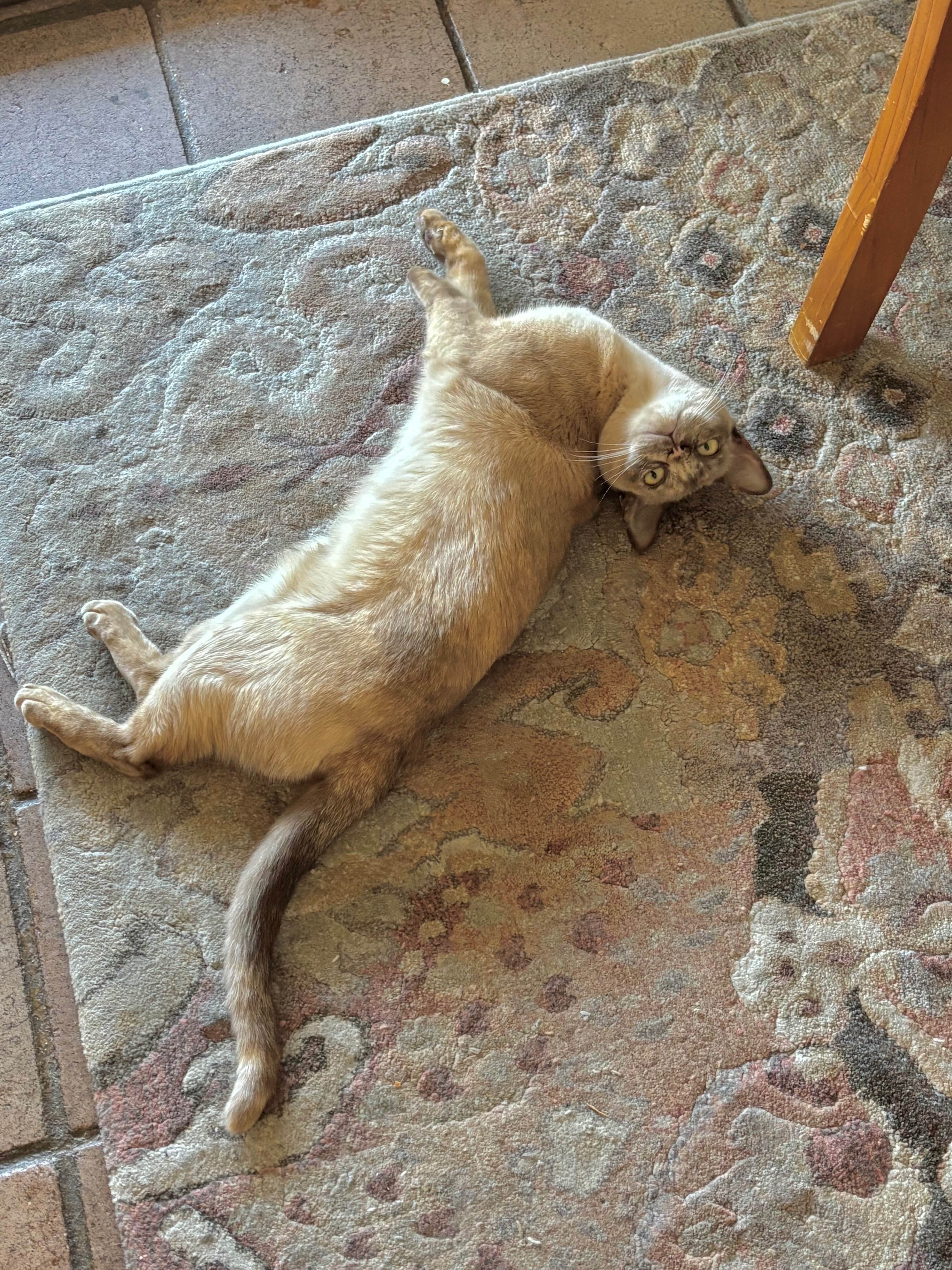 Binnie is a small, blonde burmese, she is quite friendly and has a scratchy meow. She did not come out for breakfast this morning (Dec 31st) and have been looking for her since. I noticed a hole in the netting of her enclosure, it’s likely that’s how she escaped. This has never happened before so i’m not confident in her ability to find her way back home. Please help me find her