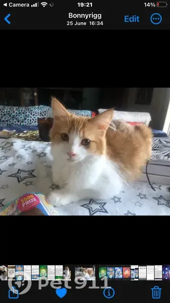 No collar, very fluffy tail ginger and white. Very observant wait for the right moment playful in trust. Clever and cute not approaching people. Not desexed he would be about 6months old now ok not microchipped . Another cat young female brought him To my door little