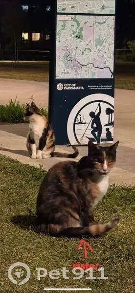 Looking for this small, friendly calico/tortoiseshell cat. She was often seen roaming near Carlingford Lightrail Station (Boundary Rd and Post Office St) with her sister. I've taken in her sister due to an injury and am looking to reunite the two.
