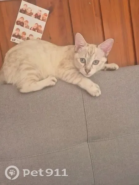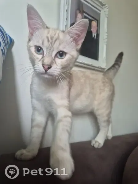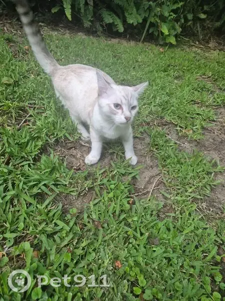 Magnolia escaped and she is only 14 weeks old. Siamese cross tabby, white fur, black markings on tail. She is very trusting, curious and cute. She hasnt spent time outdoors on her own and would wander unsupervised. Bit of a worry as she is well cared for here, fed and happy. She wasn't wearing a collar but is microchipped