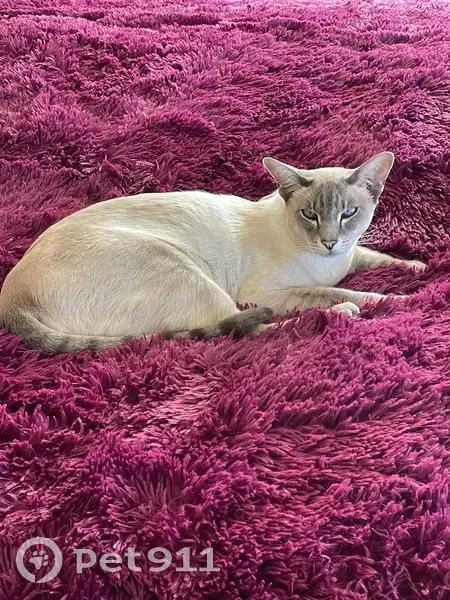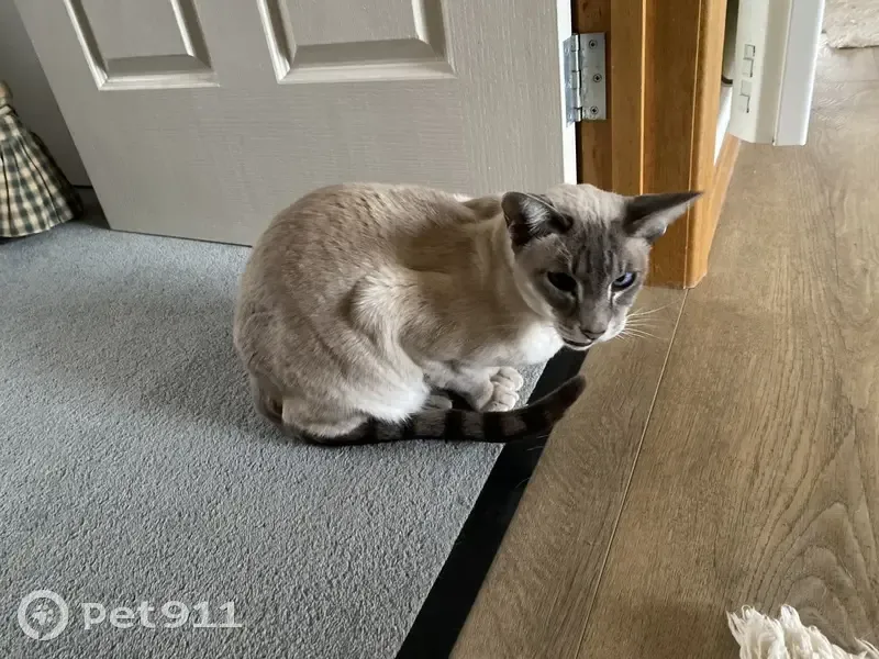 Zero, Torti point siamese, grey, big paws for a siamese and bright blue eyes, striped tail and is skittish around new people, he can be very talkative though and purrs loudly, he has separation anxiety too, he is chipped and would be 8 years old now