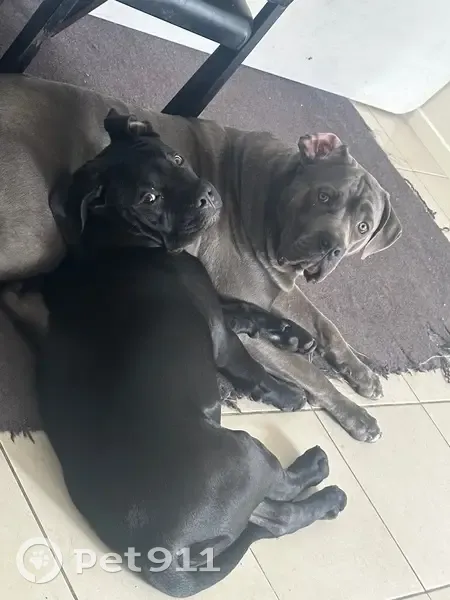 Toukou is a cane corso his fur is grey , blue eyes no Color he is aggressive with new people . He escaped from home with my other dog we have found the small one just toukou left to find . Please help us on this search