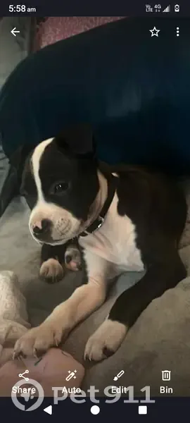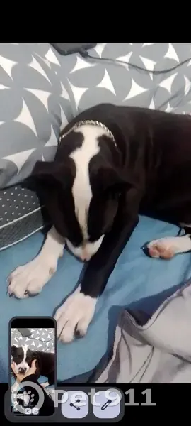 He is wearing a good chain around his neck. Very loving and sweet and will run up to get cuddles. He's only still a small pup so isn't very tall. White socks on all 4 feet Distinguished heart and dots on tip of Bose White tip on the end of his long black tail