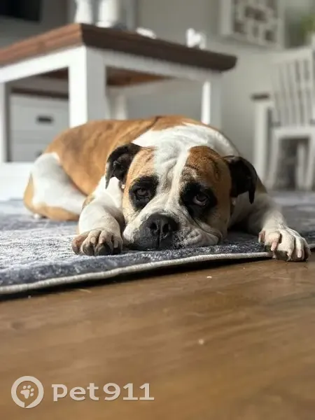 Friendly, solid 7 year old Australian Bulldog. Tri-colour. Missing from Bolton Point (near Baseball Field). Much loved family pet - broke front screen door to make her escape.