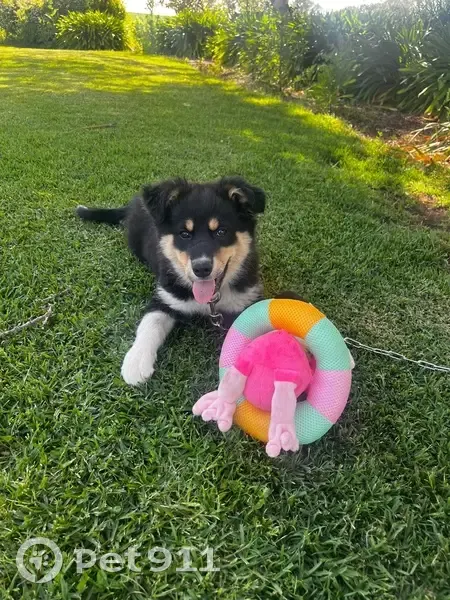 Border Collie Cross Kelpie, Black, black and tan face white socks and distinctive tan line across nose, 15 weeks old, red thin collar, friendly energetic nature. Went missing lunch from Boomey NSW 2866 area with our other missing dog