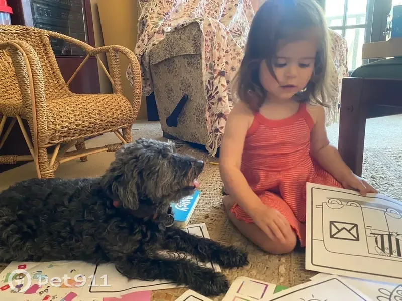 Black going grey, 12 years old, tooth missing in lower jaw. No collar,