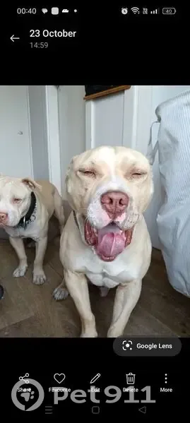 Trev is a large male dog with white blaze down forehead he was wearing a red harness near river last seen.