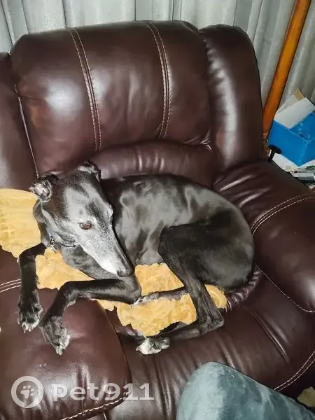 Black greyhound, very friendly, ran off with her brindle brown greyhound brother Robbie, last seen going from Newnham towards Mowbray Both have red collars and name tags and council tags.