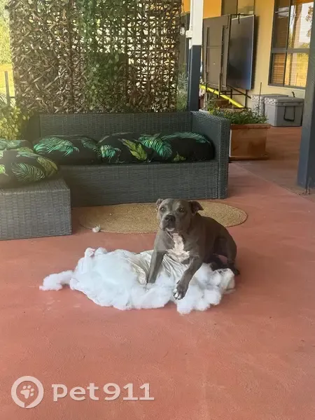 REWARD $3000 Smokey is a Blue American Staffy with a distinct white patch on her chest and bits of white on the tips of her paws. She went missing from our property and was last seen in the exact location I pinned on this site. She is also microchipped.