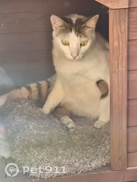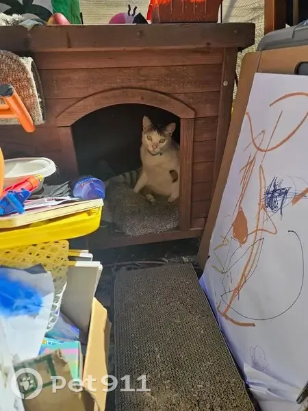 White,bit of orange,grey,blue and white collar with bell, desexed, he went out last night and doing come home he's never done this before, my kids are very upset about this .
