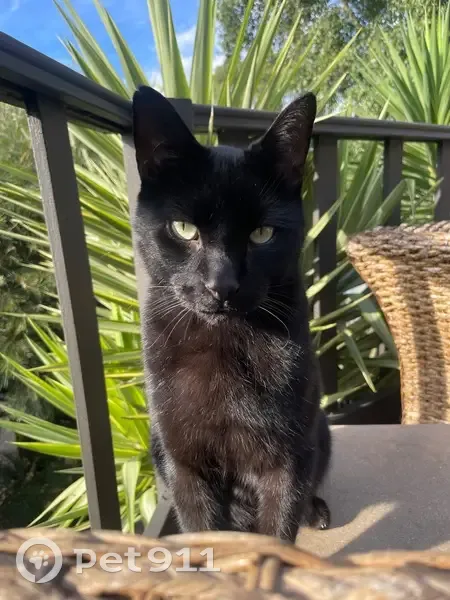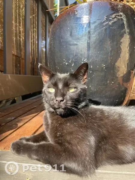 Black Cat. Has a singular white whisker on his left side.