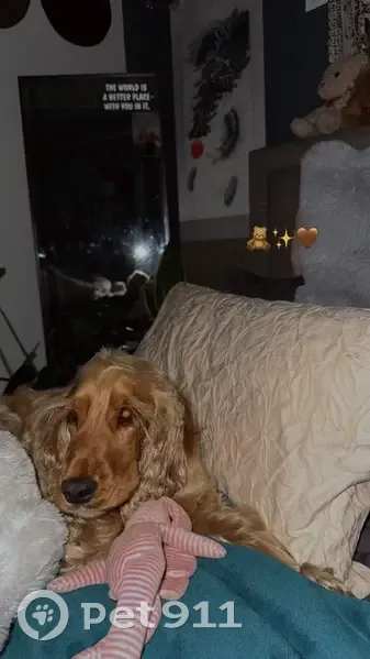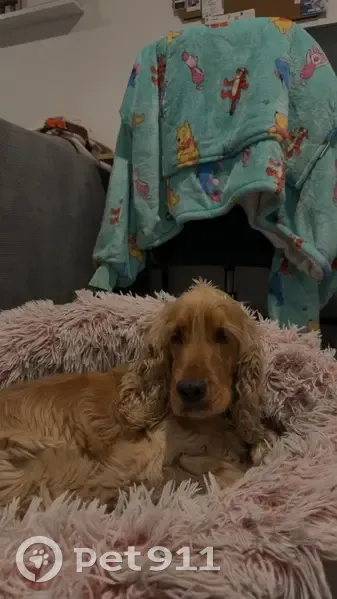 Tan/Brown curly coat, black collar, long lashes, shy and timid. Not overly food enticed but does like chicken. Very anxious and skiddish, will run away at sudden movements. Ran out of gate as it was opened when moved stuff from car near Mimosa Court, Frankston.