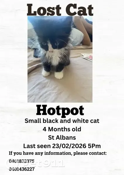 Missing cat , photo: Lost Tuxedo Cat in Brimbank, VIC