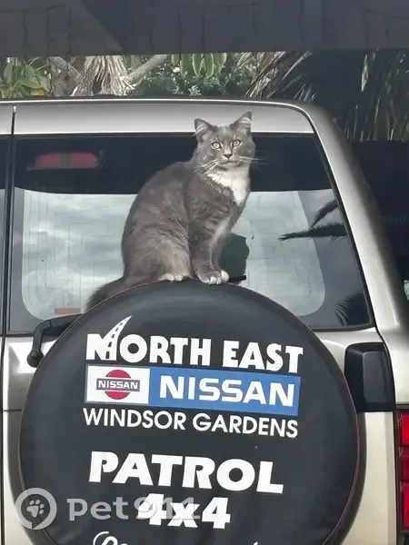 He is a very sweet boy, would never attack, bubble purrs. Pretty sure he is a blue russian cross as he was a rescue i am not completely sure. He is 3 so still young and he hasn’t come home for food which is very unusual, since monday night. Please if anyone has him or has seen him posted please get in contact, he’s my baby boy, thank you