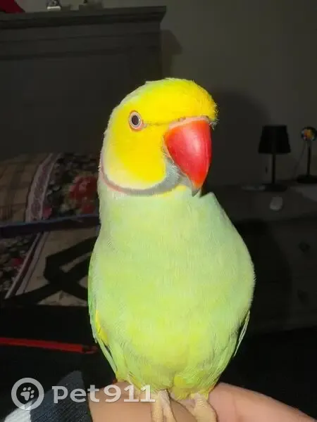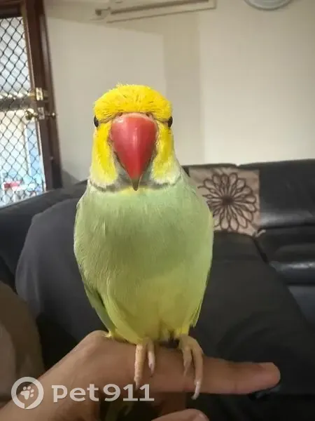 Peetu is a lovely male bird and our family member. Beautiful distinguishable features: Green body, yellow head, very red beak, black ring around neck ($500 or more reward if found by someone, please inform us immediately at 0414905000). He can talk such as I love you, You are so cute, Peekaboo, whistling, and many words. We will be thankful for your support and kindness to help us reuniting.