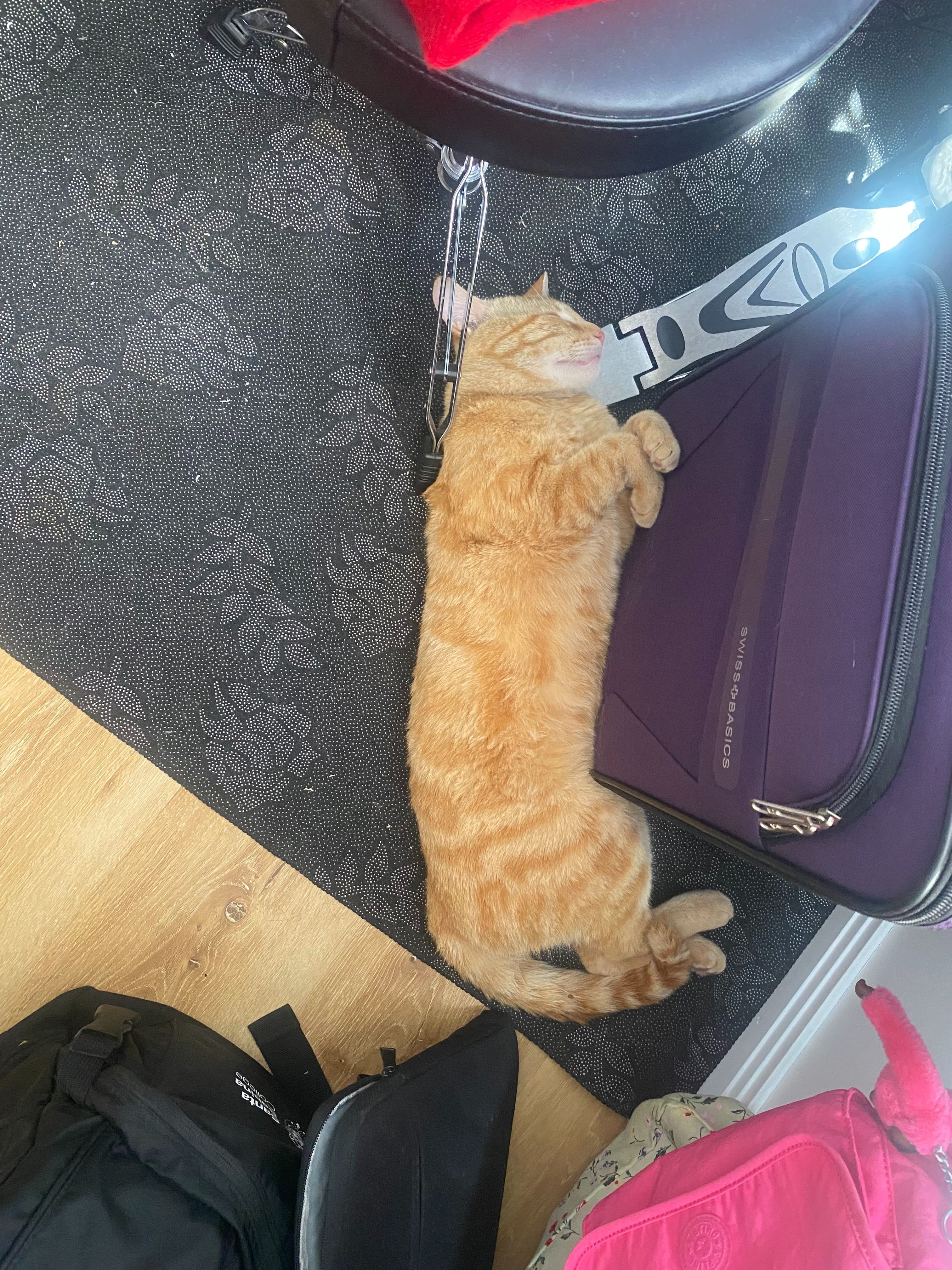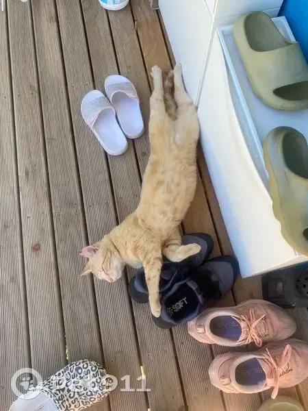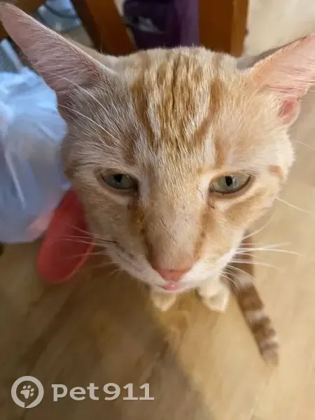 Ginger is a ginger domestic shorthair cat with white whiskers. He is mostly gingerish orange and a cream like ginger. He has ginger stripes where his legs are and his mouth area is whitish cream, and his body fur is mostly in a cream white and ginger tabby pattern. He has a green birthmark thing that is in one of his ears and has ginger stripes on his head too. His body isn't too fluffy. He just disappeared one day and hasn't been seen for 2 weeks.