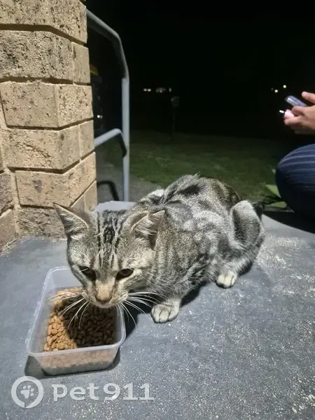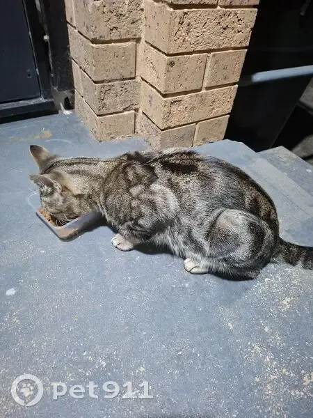 Grey tabby male cat, still looks young, very friendly, not desexed, no id/collar. Walked up to our door and wanted some love and attention. Loved a good scratch and pats. Gave him some dry food and water.. Not food aggressive.