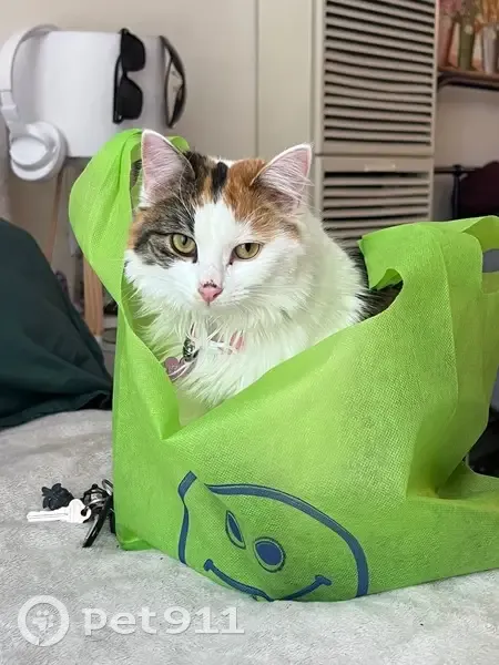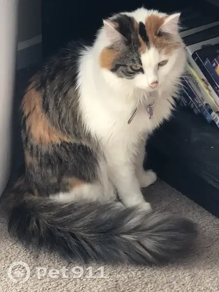Disappeared around 4pm on the 17th of November, with a window found open. She’s a fluffy 10 month old calico medium short hair. She’s still relatively small for her age and is mostly white with spots of brown, tabby and ginger. She’s got a brown spot on her nose and green eyes. She has a pink collar with a pink bone-shaped tag. Responds to the name “Rory” and is incredibly food driven (would kill for churu). Her microchip number is 6907.